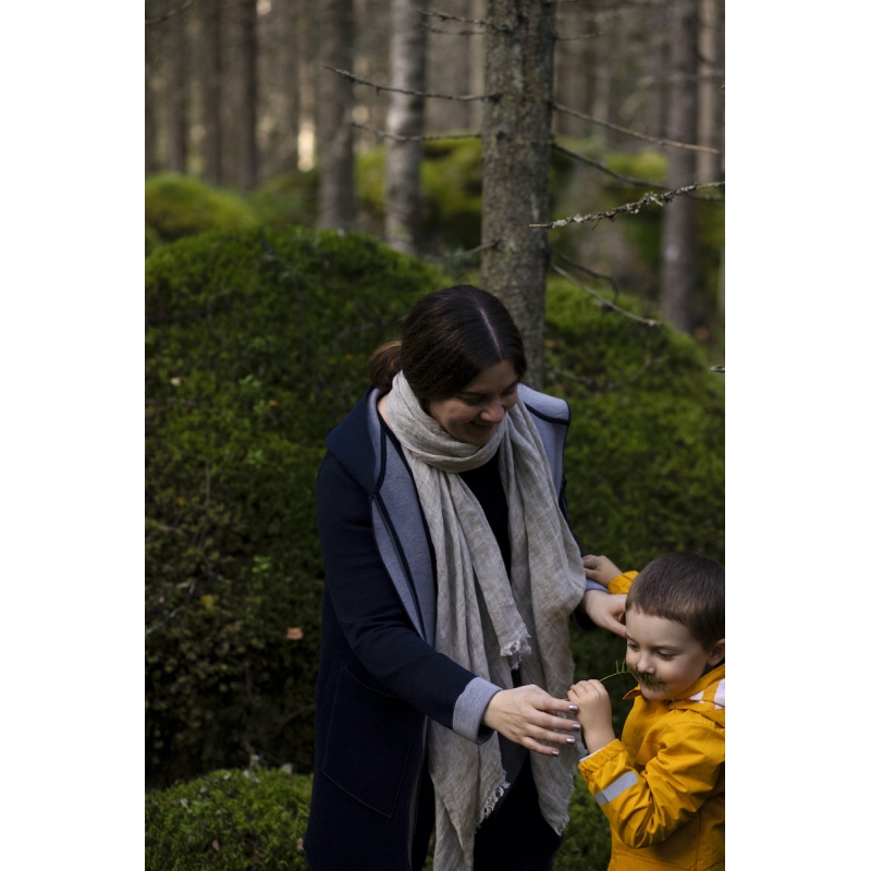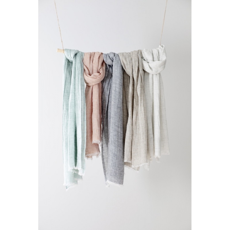 The Lempi linen scarf will enchant you with the unique beauty of 100% linen and delicate fringes. The neutral gray shade will beautifully complement your autumn wardrobe or enliven your spring outfit. The scarf knitted from premium linen is very pleasant to the touch and will keep you warm at the same time .