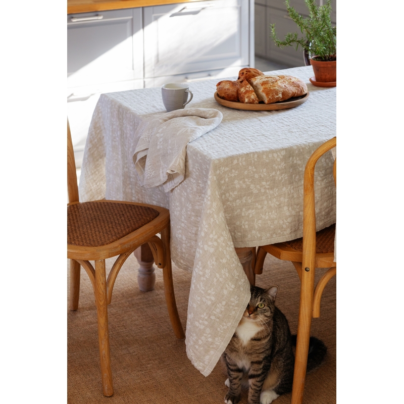 A high-quality large tablecloth woven from 100% linen grown in Normandy features a Meirami (marjoram in Finnish) motif in a white linen combination. The design celebrates the natural beauty of herbs and brings charm, fragrance and harmony to the home. If you like to experiment, you can also use the tablecloth as a stylish bedspread or a light blanket that you can wrap yourself in as a couple. Furnish your home with a beautiful linen accessory that combines nature, functionality and Scandinavian design.