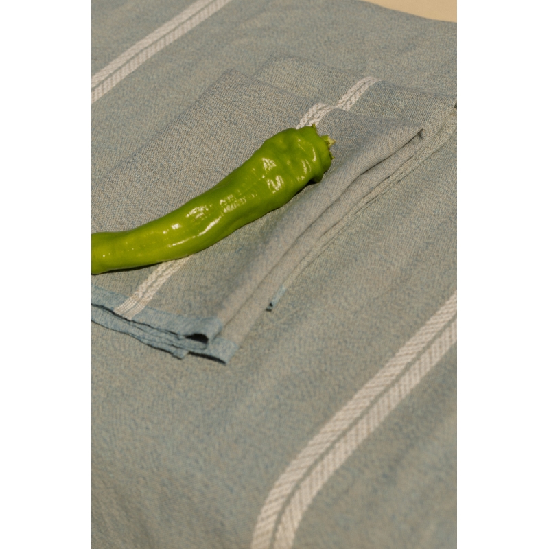 The Venla tablecloth is woven from 100% linen and uses so-called mottled yarn - a combination of two colors that creates a soft, vibrant color impression. A striking detail is a decorative stripe made of coarser yarn, which gives the fabric depth and a hand-woven character.