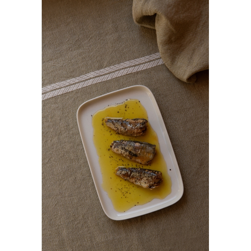 The Venla tablecloth is woven from 100% linen and uses so-called mottled yarn - a combination of two colors that creates a soft, vibrant color impression. A striking detail is a decorative stripe made of coarser yarn, which gives the fabric depth and a hand-woven character.