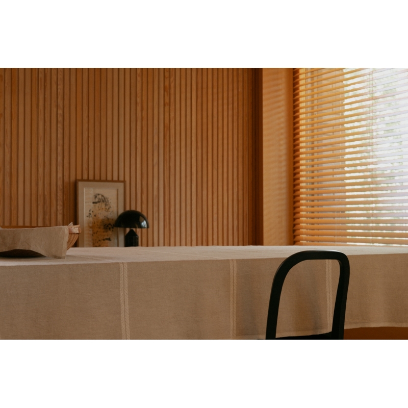 The high-quality large Venla dining table tablecloth by Finnish designer Elina Helenius draws inspiration from traditional crafts, history and stories. The structure of the pattern is reminiscent of the coarser fabrics worn by rural artisans. The goal was to create an honest and grounded pattern that does not look old-fashioned. The tablecloth is ideal for everyday dining as well as special occasions. An ironed tablecloth looks sleek and elegant, but if you leave the linen naturally wrinkled, it doesn't matter at all - it's a natural part of its charm.