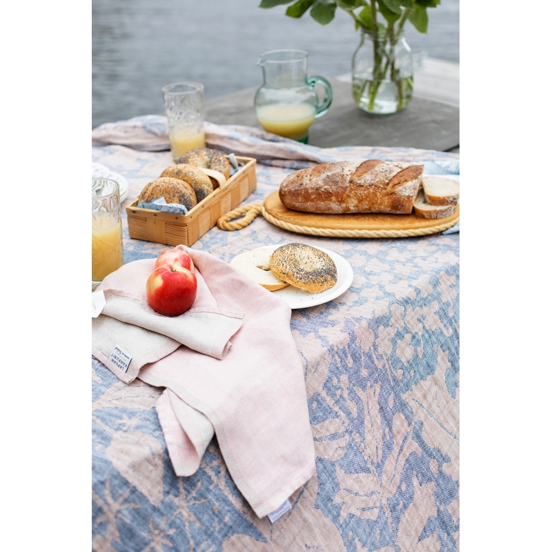 The kitchen towel is woven from 100% linen with one side light pink and the other in a natural shade. Linen dries quickly and is therefore practical for everyday work in the kitchen.