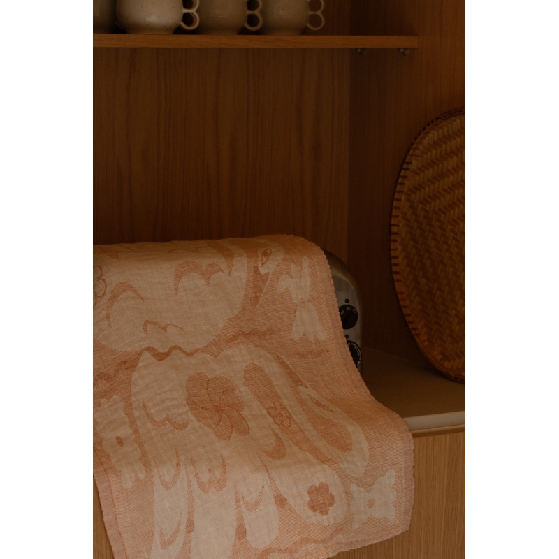 The stylish Kaksin kitchen towel features a distinctive original pattern by Finnish designer Armi Teva, which is full of fantasy and subtle playfulness. The motif was created spontaneously – by drawing, testing shapes and ideas, until it was literally born before the eyes of its author: "I started by drawing different types of flowers and illustrations of plants, and the shapes came about almost by accident – what if I drew this big flower with a swan's neck as a stem?"