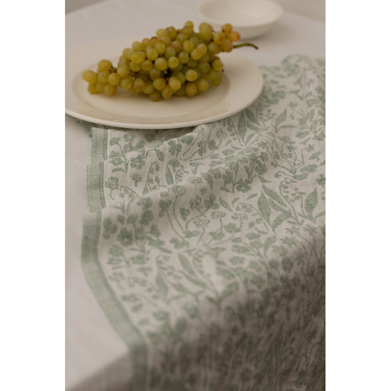The kitchen towel is woven from 100% linen with a delicate Niitty floral pattern in a green shade. Linen dries quickly and is therefore practical for everyday work in the kitchen.