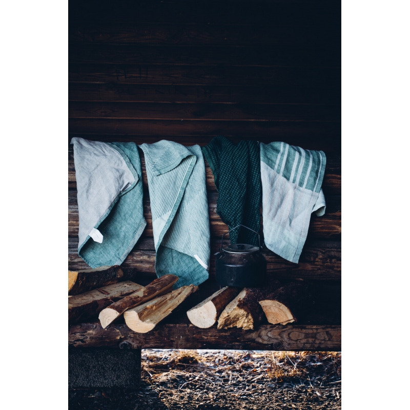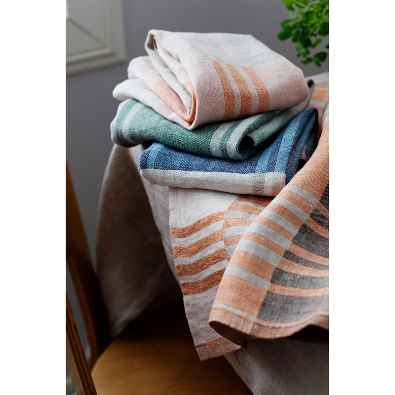 The gorgeous Toffee kitchen towel woven from 100% linen in a coordinated color combination of green and mint will perfect your kitchen counter, whether you iron it perfectly or leave it casually wrinkled . Linen dries quickly and is therefore practical for everyday tasks in the kitchen.