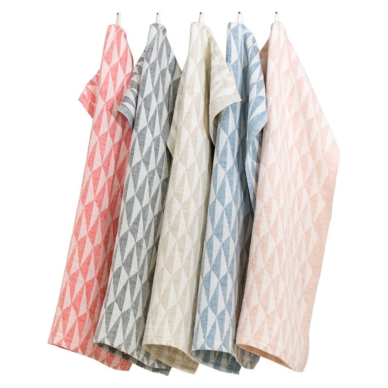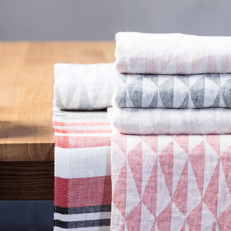 The tea towel with a triangular pattern fits perfectly not only in Scandinavian-style kitchens, but also in traditional vintage-style ones. The neutral gray-white color of the tea towel looks harmonious and will delicately finish your kitchen, whether you use it to wipe dishes or to cover a freshly baked cake. The tea towel is pre-washed at the factory and is therefore ready to use.