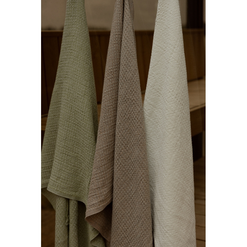 The Luoto towel is striking at first glance with its woven waffle weave, which is naturally highly absorbent and gives the towel a soft texture. It is woven from 100% washed European linen with Masters of Linen certification, which guarantees top quality and sustainable origin of the material.