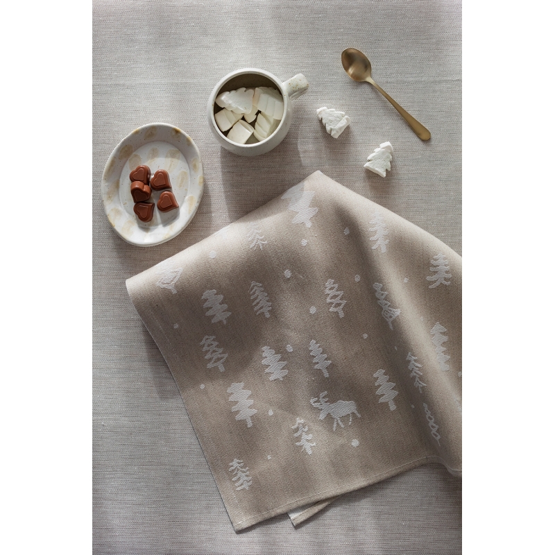 The Poro kitchen towel with a cute reindeer in the forest motif by Finnish designer Matti Pikkujämsa will bring the peace of Nordic nature into your home. On one side, the towel is dark with a light pattern, while on the other side, it has a light background and a dark pattern. Thanks to its composition of a blend of linen and organic cotton, the towel is highly absorbent and at the same time pleasant to the touch.