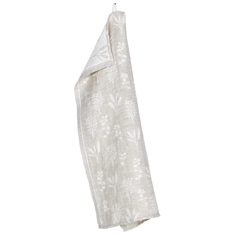Salvia is a linen tea towel with a unique motif inspired by herbs, designed by designer Elina Helenius . The sage motif celebrates the beauty of herbs and their ability to bring fragrance, taste and harmony to everyday life. This double-woven tea towel is not only beautiful, but also versatile - it can be used not only in the kitchen, but also as a hand towel. High-quality linen grown in Normandy and careful processing guarantee high absorbency, durability and longevity. Salvia will add a touch of nature to your home while embodying the ecological and sustainable approach typical of the Finnish brand Lapuan Kankurit.