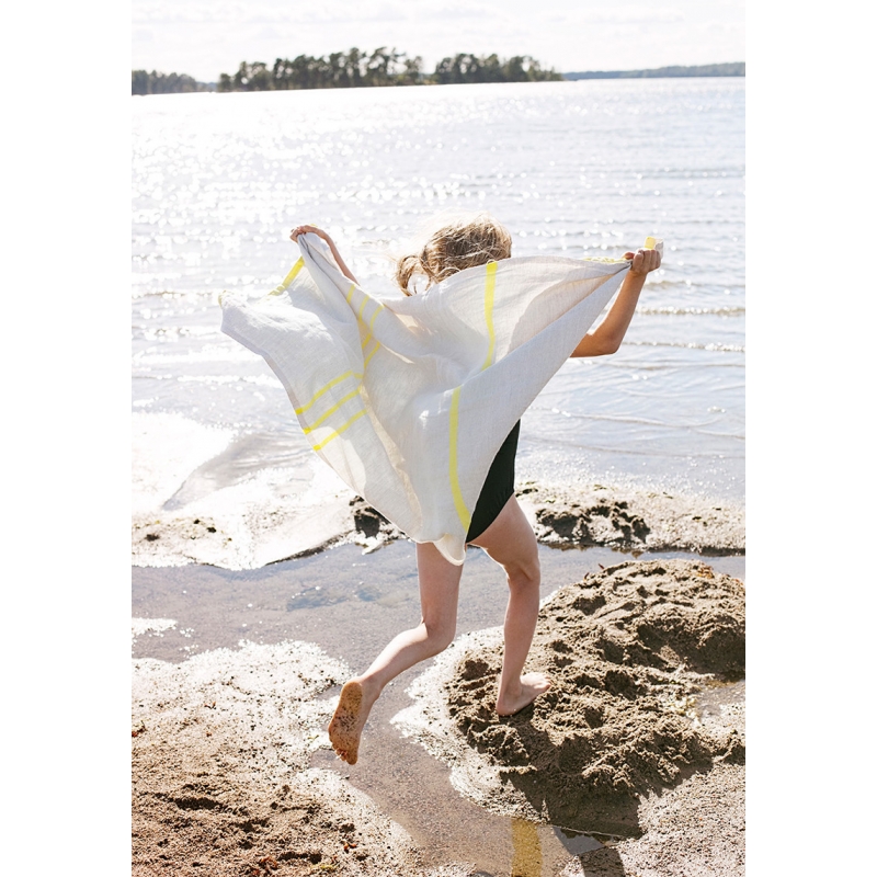 The Usva towel is woven from 100% linen and, thanks to its natural shade, it looks harmonious at first glance. Linen dries quickly and is pleasant on the body, so you can use the large towel not only in the bathroom for drying off, but also as a simple kilt by wrapping it around your waist in the sauna. It will also serve perfectly as a beach towel for the sea.