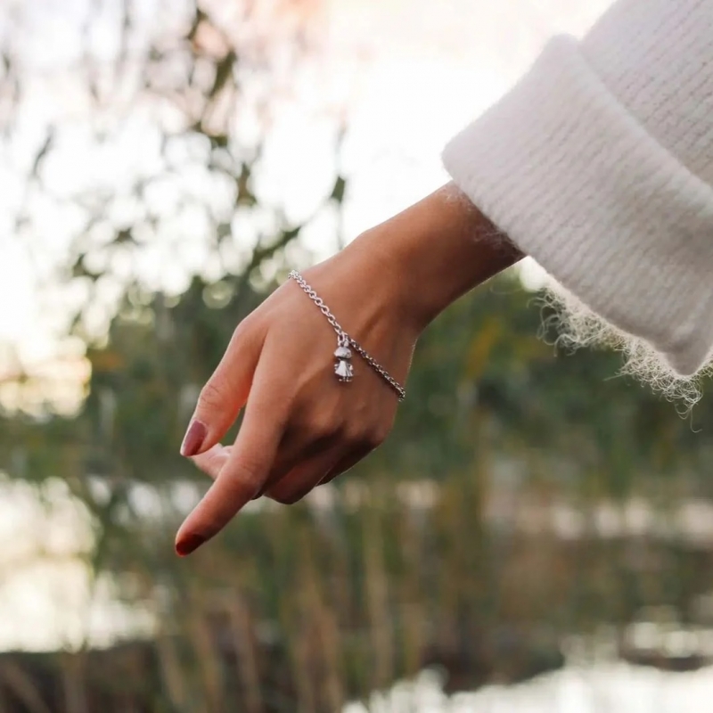 Elegant, lovely silver bracelet decorated with a delicate Moomin pendant. The minimalist design of the bracelet combines Nordic purity with playful detail that will delight all fans of Tove Jansson's stories. It is made with an emphasis on handcrafting and sustainability directly in Kuopio, Finland , in the workshops of the jewelry manufacturer Lumoava , which boasts the title of the northernmost jewelry store in the world. The adjustable length ensures comfortable wear and universal size. The bracelet comes in an elegant gift box - ready to please you or your loved ones.