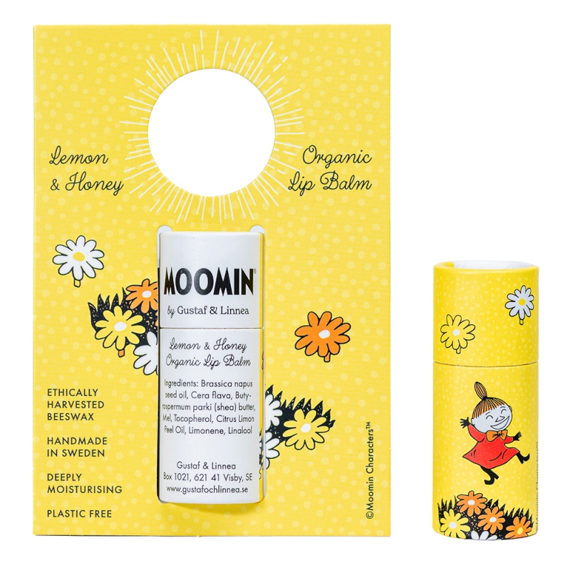 Natural lip balm with the motif of Little My from the popular Moomin fairy tales is made in the Swedish family company Gustaf och Linnea and combines gentle skin care with a sustainable approach to nature.