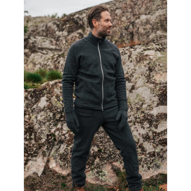 The pants have a straight cut, a zip pocket in the front and an adjustable waist for maximum comfort. Flat seams ensure a pleasant feeling even when worn directly on the body. The finely combed merino fleece breathes, warms even in moisture and naturally regulates body temperature. Unlike synthetic materials, it does not release microplastics and is naturally non-flammable. The wool also neutralizes odors, so there is no need to wash the pants often - usually just air them out.