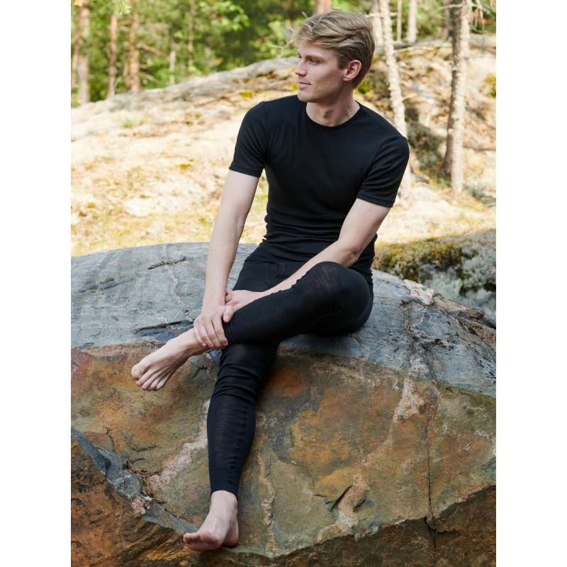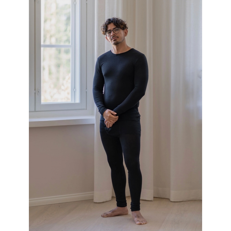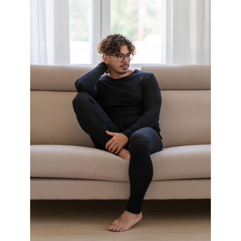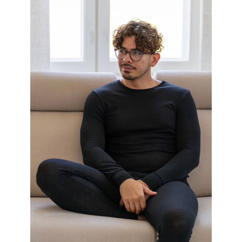 Men's underpants made from a fine blend of organic merino wool and natural silk provides exceptional comfort all year round – pleasantly cool in summer and reliably warm in winter. The light, breathable knitwear naturally adapts to the body, wicks away moisture well and remains dry to the touch even in changing temperatures. Thanks to its softness, it is ideal as a first layer for everyday wear, in nature, for moments of relaxation and as pajamas.