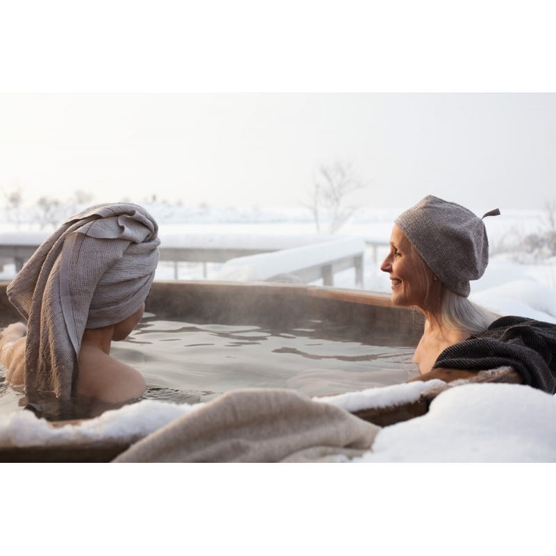 The luxurious Meri sauna hat made of high-quality linen and cotton will be your good companion for moments of relaxation. The sauna hat protects your head from overheating and, thanks to its simple cut, looks natural.