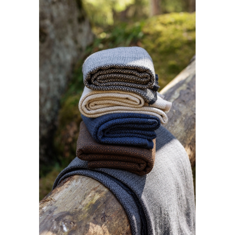 The exclusive Koli blanket made of high-quality merino wool will keep you warm and bring a piece of timeless Finnish design to your home. The interesting, subtle pattern and pleasant colors will keep you company on long winter evenings and cooler summer nights.