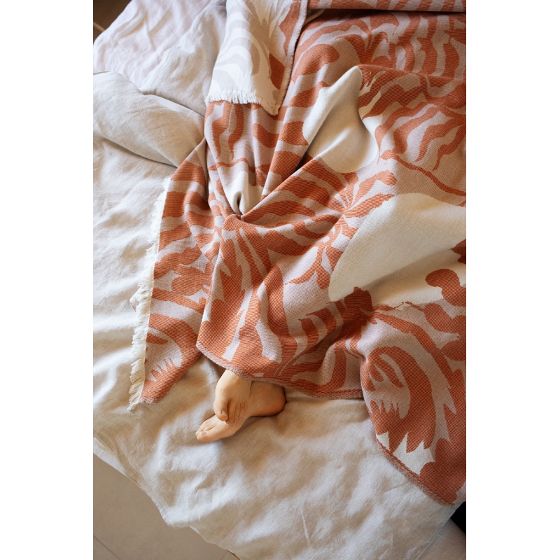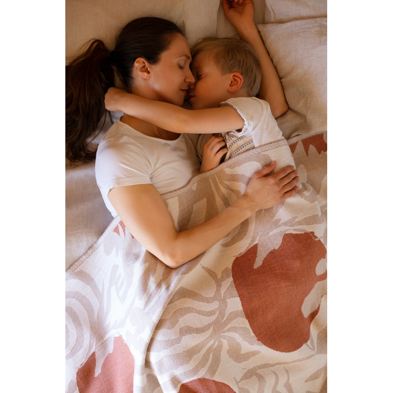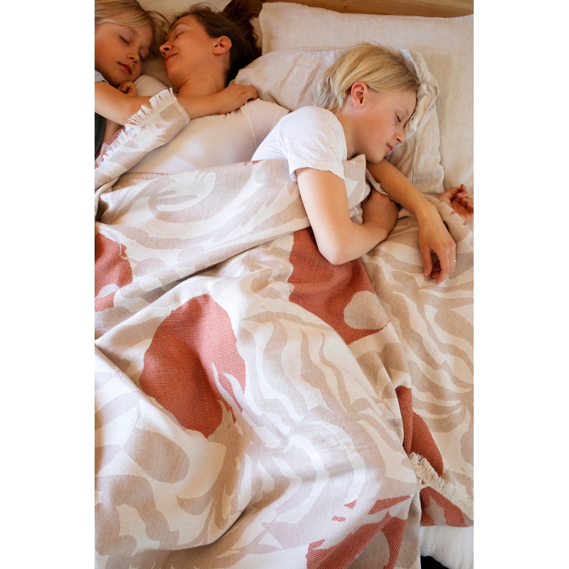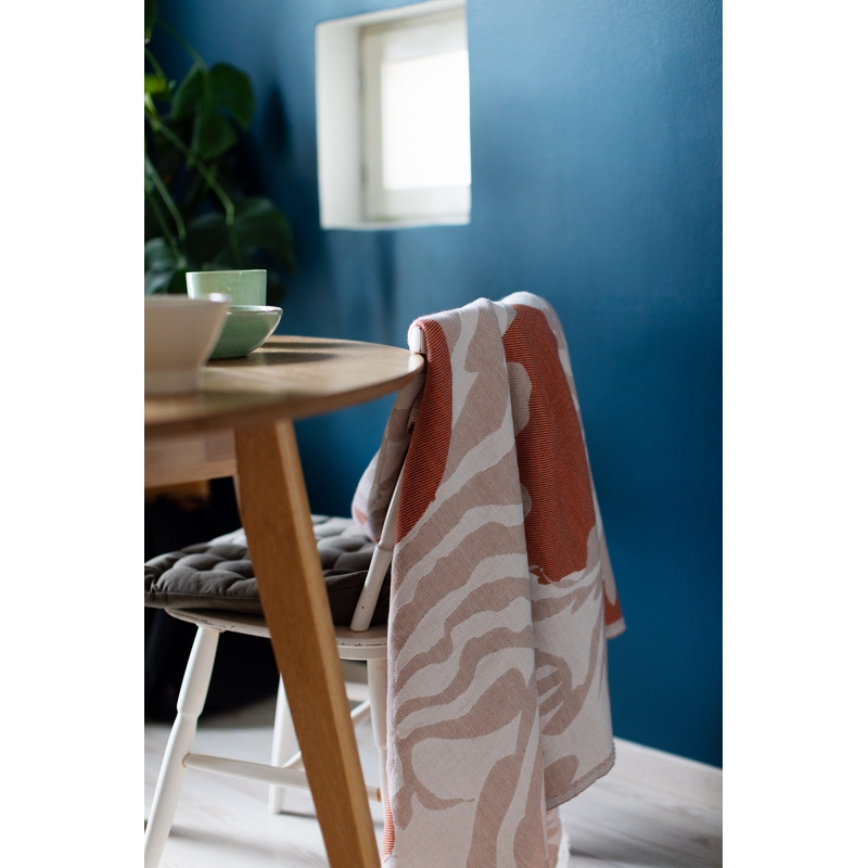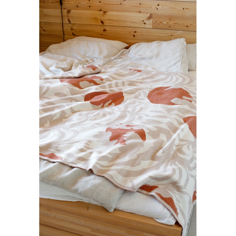 The exclusive Kuutamo blanket (Finnish for moonlight) is inspired by a warm summer night, when the forest vegetation reflects the light of the bright moon. The blanket is woven from premium Australian merino wool and organic cotton. It is pleasant to the touch and will keep you warm all year round.