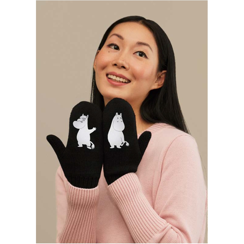Luxurious Finnish mittens with a reflective Moomin motif by the famous Finnish author Tove Jansson are knitted from merino wool in Tampere, Finland and printed in Helsinki. The top-quality merino wool is pleasantly soft on the skin and does not pill. The double-layer knit will keep your hands warm even in the deep (Nordic) winter.