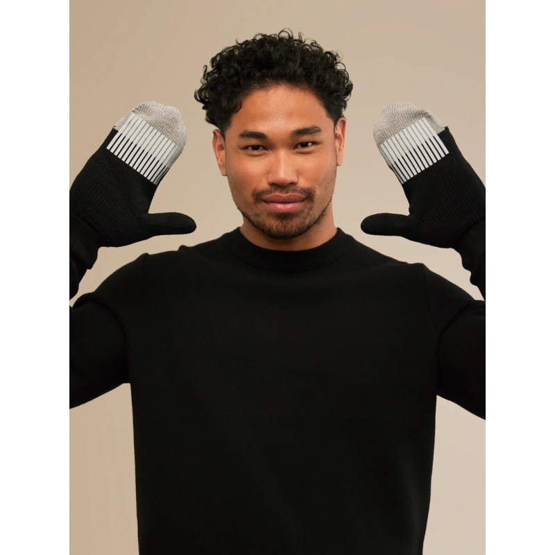 Luxurious Finnish mittens with a reflective Nordic pattern Polku are knitted from mulesing-free merino wool in Tampere, Finland and printed in Helsinki. The premium merino wool is pleasantly soft on the skin and does not create any pilling. The double-layer knit will keep your hands warm even in the deep (Nordic) winter.