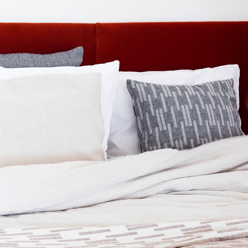 The luxurious Arki pillowcase, woven from high-quality merino wool and premium linen with a minimalist pattern, is perfect for cozy moments. It can be used to decorate an armchair or sofa, or it can be used on a bed in the bedroom.