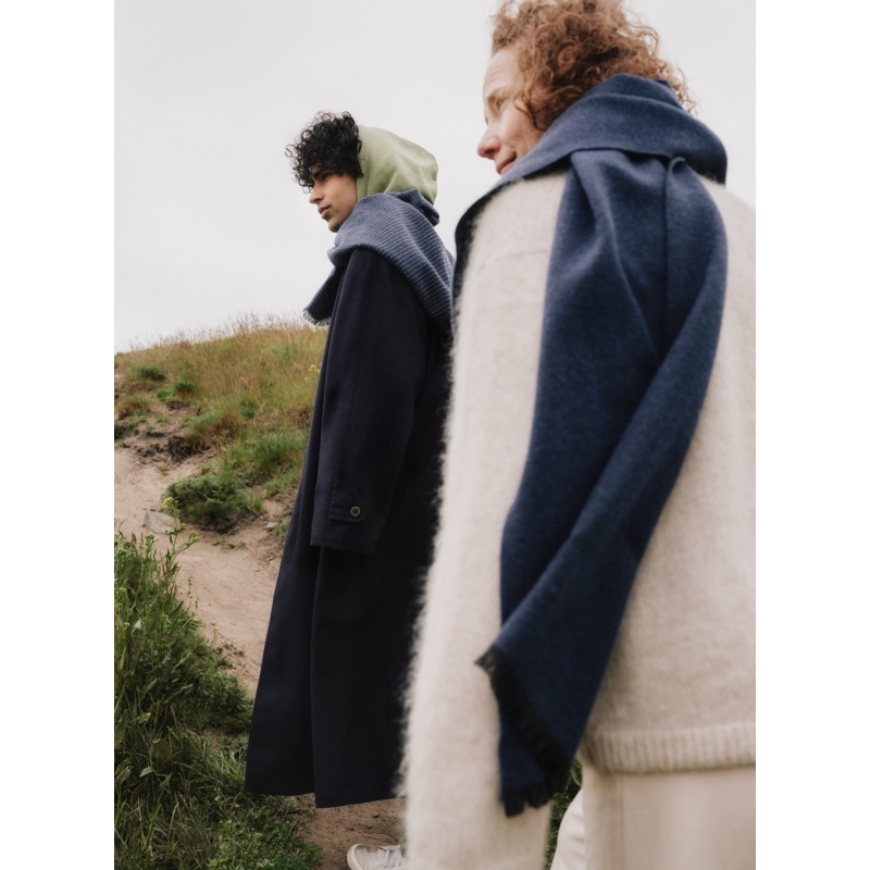 The exclusive Hanki scarf is woven in a Finnish weaving mill from premium merino wool, which is incredibly pleasant to the touch and will keep you warm whenever you need it. The scarf has a subtle woven pattern in shades of blue and is decorated with fine short fringes at the ends.