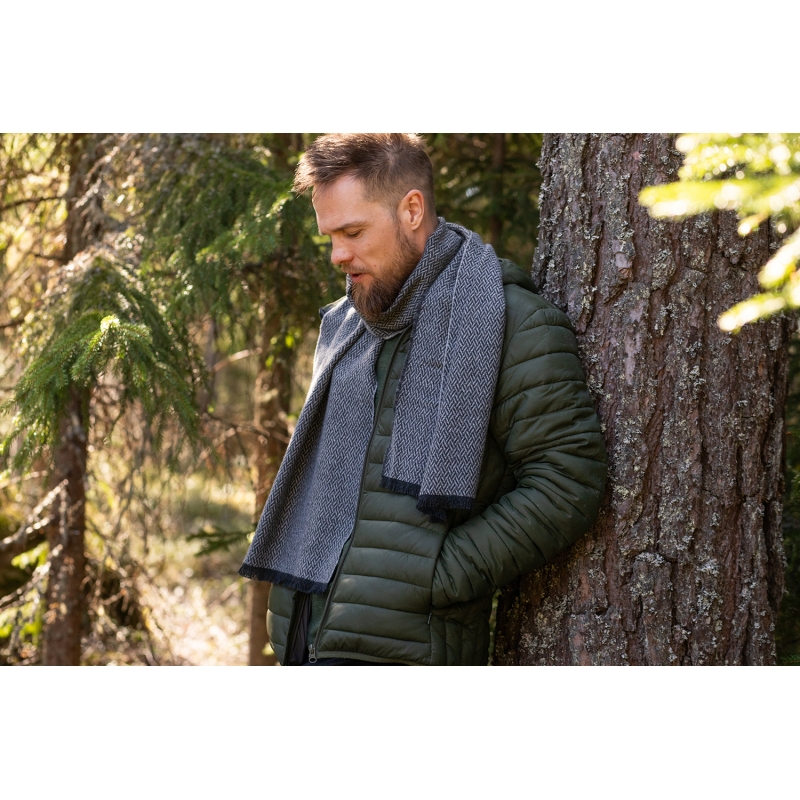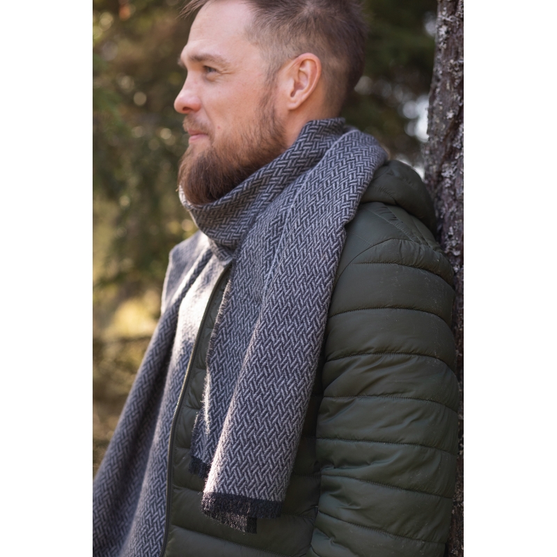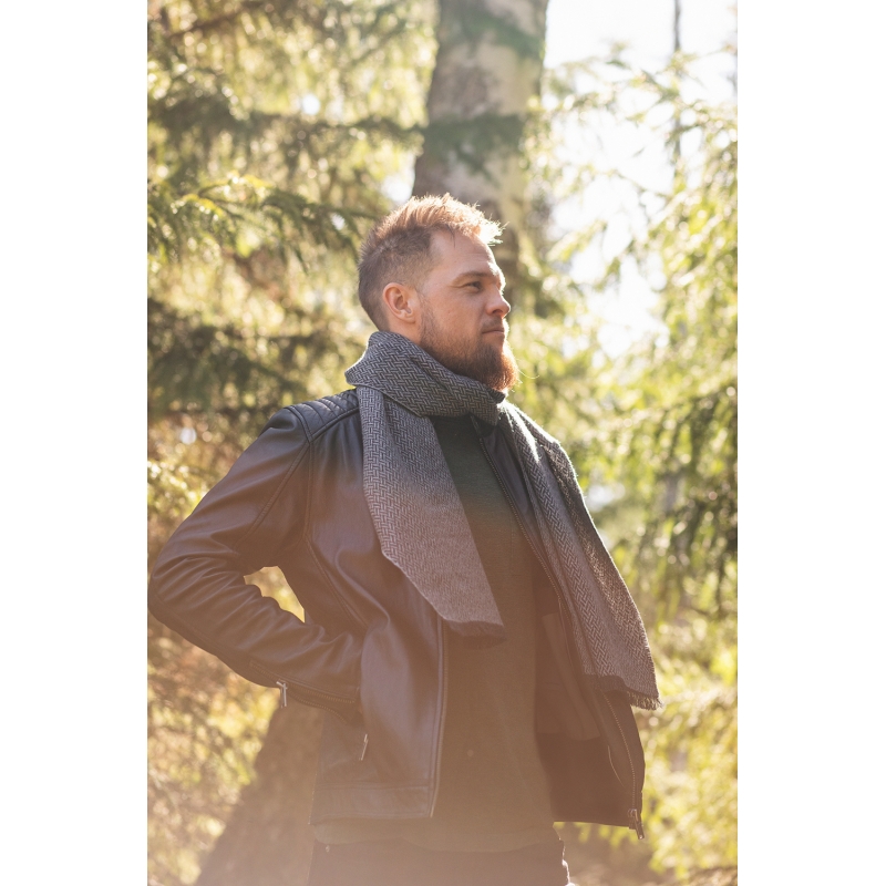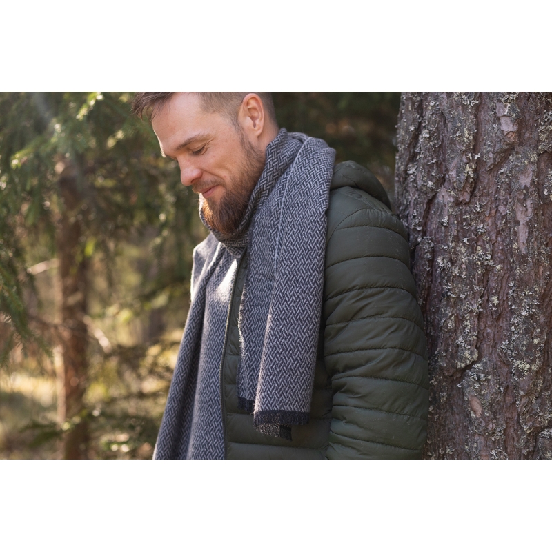 The exclusive Huurre scarf is woven in a Finnish weaving mill from premium merino wool, which is incredibly pleasant to the touch and will keep you warm whenever you need it. The scarf has a stylish woven pattern and is decorated with delicate short fringes at the ends.