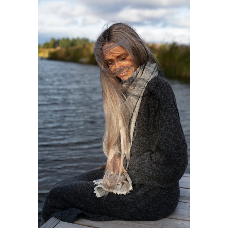 The Tanhu scarf is woven from premium merino wool and pure worsted wool and has practical pockets to keep your hands warm in the winter. A practical accessory that will make cold days more pleasant and liven up your wardrobe. The scarf is perfected with delicate fringes.