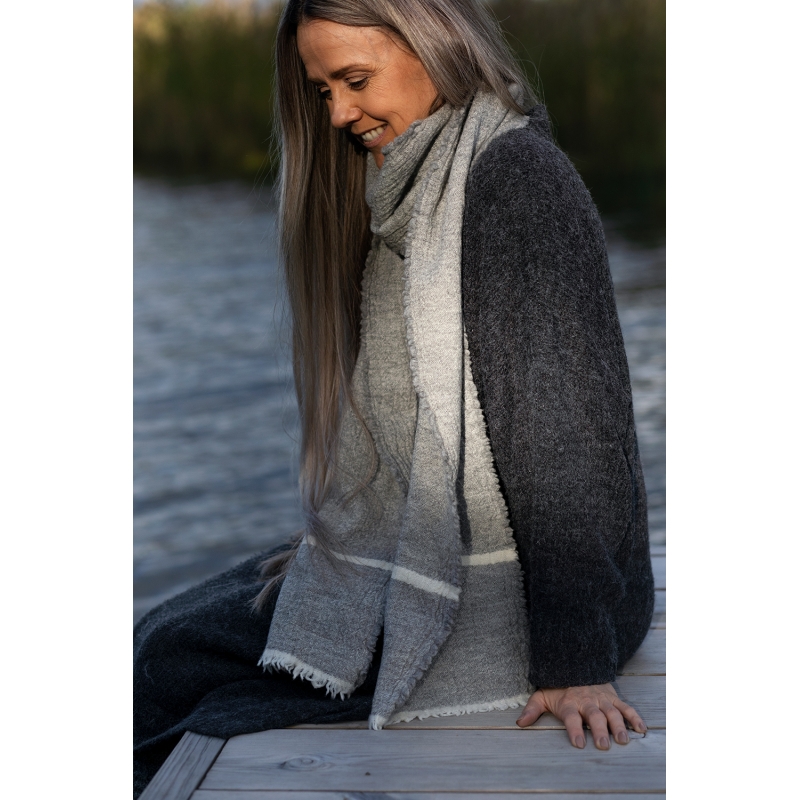 Merino scarf Tanhu, light gray-white