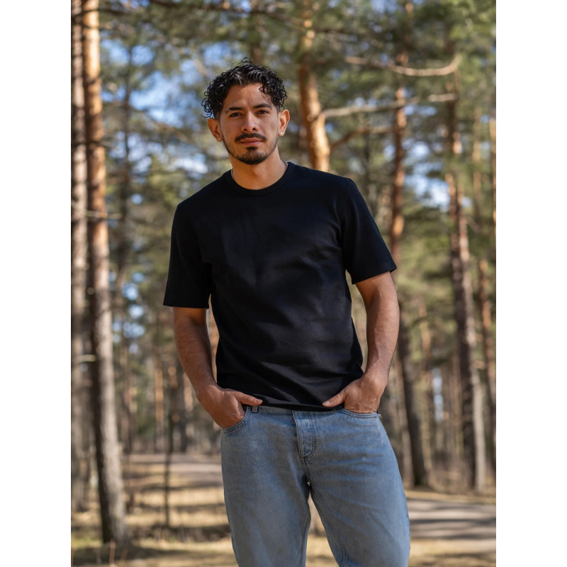 A classic short-sleeved T-shirt made of fine 100% organic merino wool is a proven choice for the colder season. The warm and breathable knit naturally regulates temperature, wicks away moisture well and keeps the body comfortable even in changing conditions. The material is soft, pleasant on the skin and thanks to its natural ability to neutralize odors, frequent washing is not necessary. Thanks to the opaque knit, the T-shirt is suitable both as a base layer and separately for everyday wear.