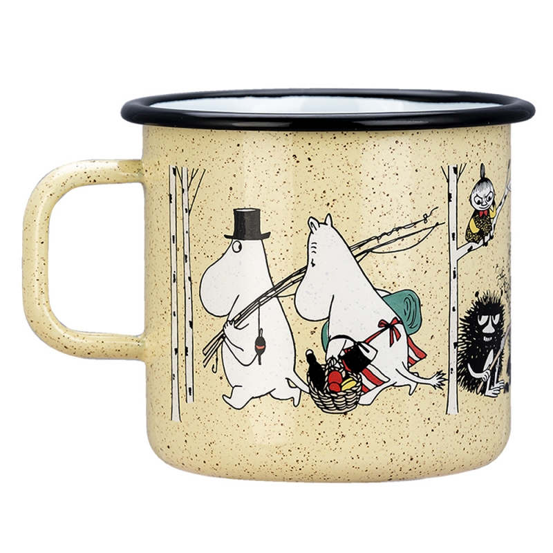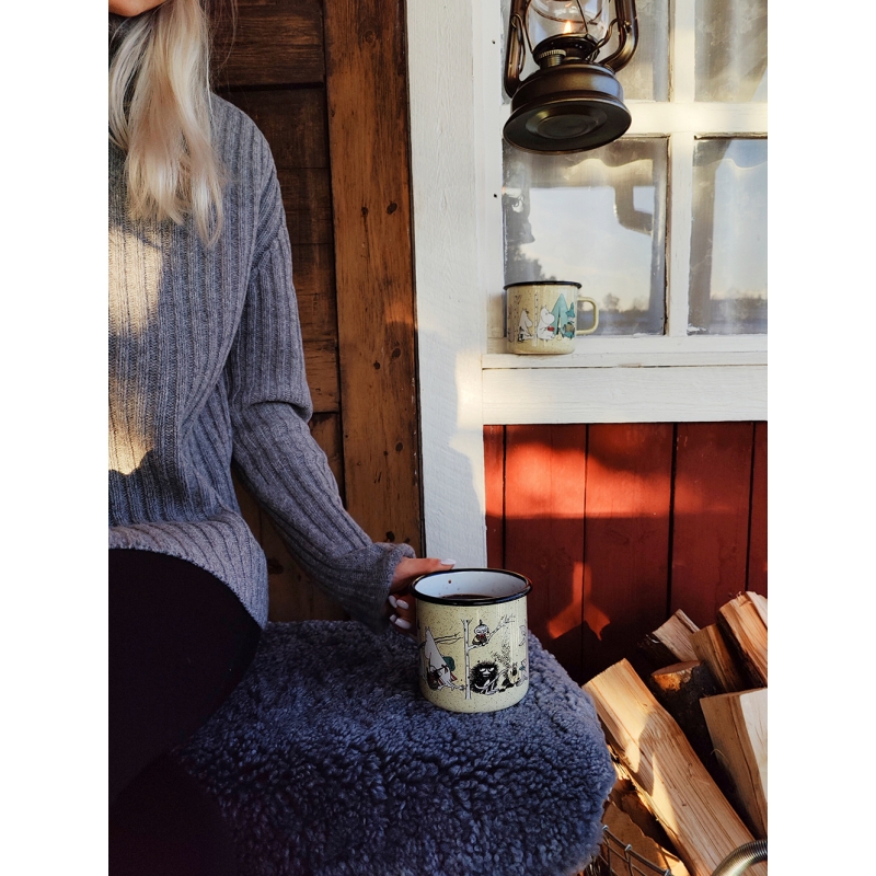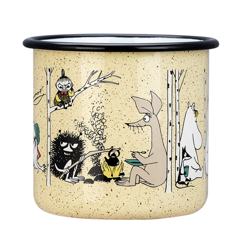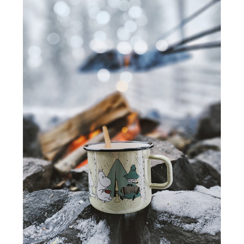 A large enamel mug based on the Moomin stories by the famous Finnish author Tove Jansson depicts the popular fairy tale characters on a camping trip that they love so much. A great gift for all adventurers and nature lovers who have the Moomin Valley fairy tales stuck in their hearts. The mug is ideal for serving a really big cup of tea and because it is made of enamel, it can also be used for cooking on all types of stoves, including induction or open fire.