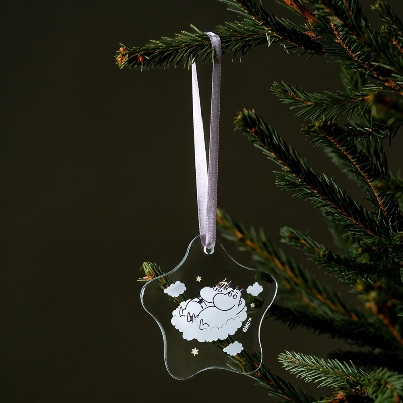 Bring a piece of the magical atmosphere of Moominvalley into your home. The handmade glass star-shaped decoration features the lovely Moomin and Snorkmaiden motif by the famous Finnish author Tove Jansson.