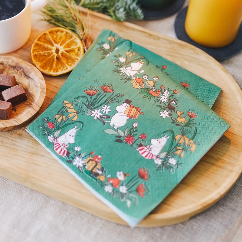 High-quality paper napkins with a Moomin motif will put you in the mood for Christmas and will delight not only children, but also adult lovers of stories by the famous Finnish author Tove Jansson . And because the Moomin motif with gifts is neutral, you can also use them for a birthday party. The package contains 20 pieces.