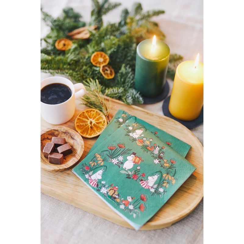 Moomin Misteli napkins 33x33cm, 20pcs / green