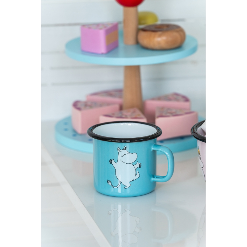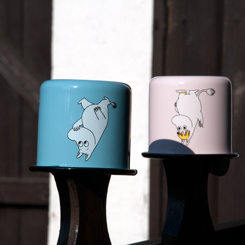 The cute enamel tin features the main character of the Moomin fairy tale by famous Finnish author Tove Jansson. Moomin is curious, likes to discover new places and loves the sea.