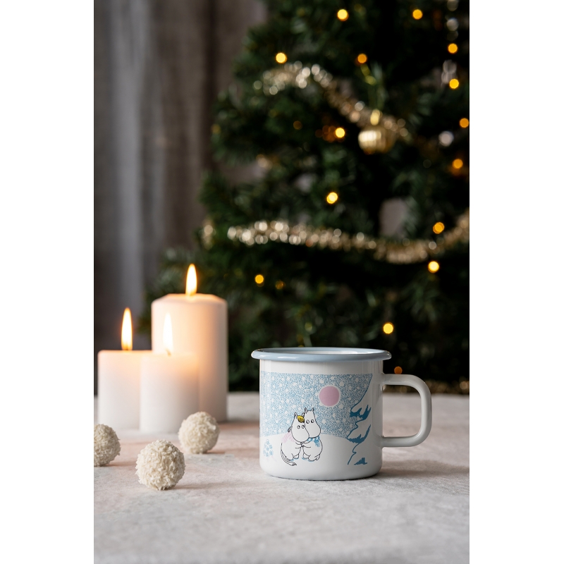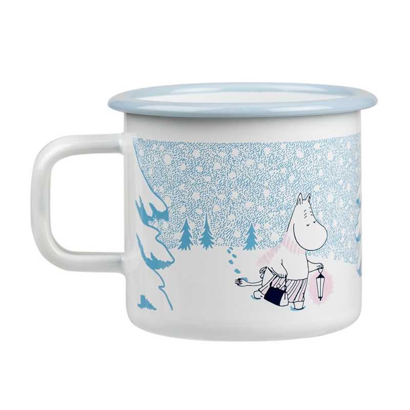 The snowy, quiet and peaceful Moomin Valley literally invites you to winter fun. A lovely enamel mug with motifs from the fairy tale Moomin by the famous Finnish author Tove Jansson will bring true winter comfort. The mug is from a limited collection.