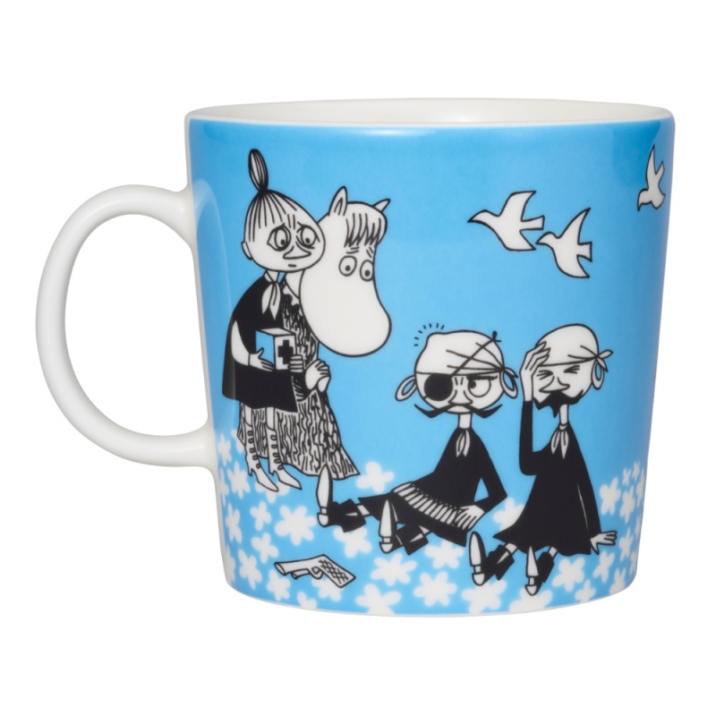 The popular Moomin mug in a larger size! While Moomins and pirates have completely different intentions in life, in Moominvalley everyone can live in peace. The illustrations are based on a postcard drawing by Tove Jansson from 1982 and a scene from her comic strip "Moomin's Desert Island" from 1955. A beautiful piece for Moomin lovers.