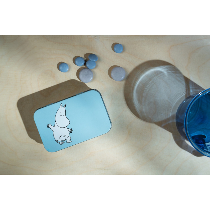 The small tin can from the Moomin Retro collection represents the main character of the Moomin stories – Moomin himself. He is kind, curious and adventurous, always ready to discover the world and stand by his friends as a loyal and courageous companion.