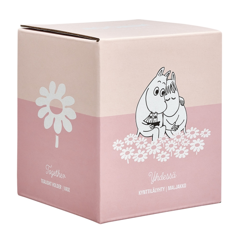 The lovely Together glass candlestick, with its motif of Moomin hugging Miss Ferce, will be a beautiful expression of affection for the person you love, for example on Valentine's Day. You can also use the candlestick as a small vase for freshly picked flowers. Handmade from lead-free glass and packaged in a gift box.