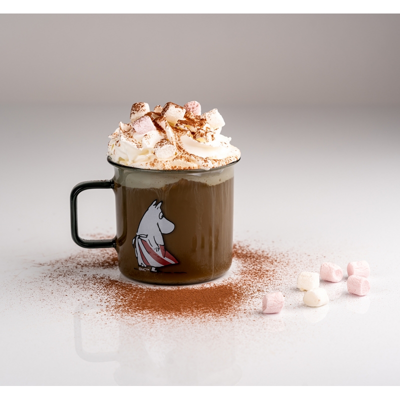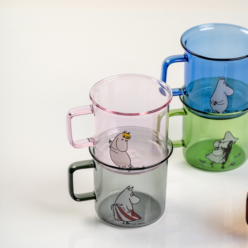 The glass mug with the motif of the fairy tale Moomin by the famous Finnish author Tove Jansson made of borosilicate glass is lightweight and durable . The mug can withstand both ice-cold and hot drinks, so you can enjoy hot tea, coffee, mulled wine or ice-cold lemonade from it.