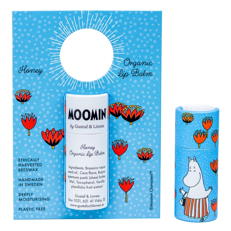 Natural lip balm with the motif of Moominmamma from the popular Moomin fairy tales is made in the Swedish family company Gustaf och Linnea and combines gentle skin care with a sustainable approach to nature.