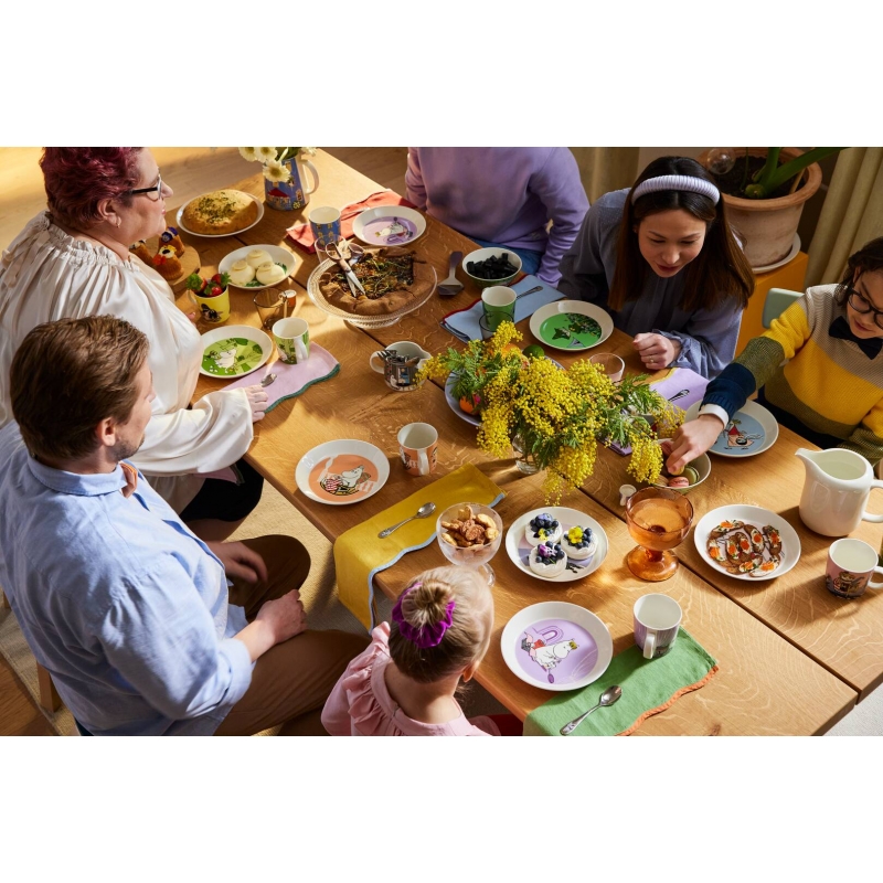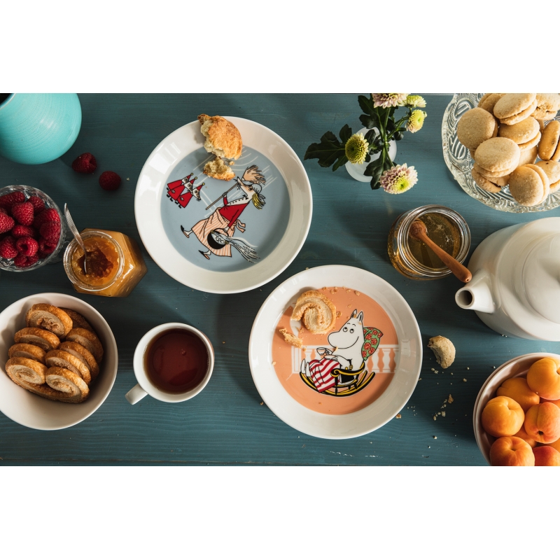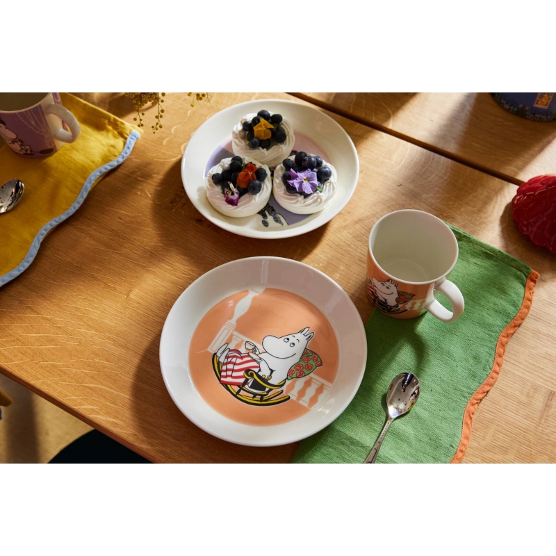 The lovely Moominmamma porcelain plate in the new marmalade shade features a lovely motif of a kind mother Moomin, who is tending the garden, relaxing in her rocking chair and drinking coffee. The plate is an original gift for children, but it will also please adult Moomin lovers who like to reminisce about the moments spent with storybooks.