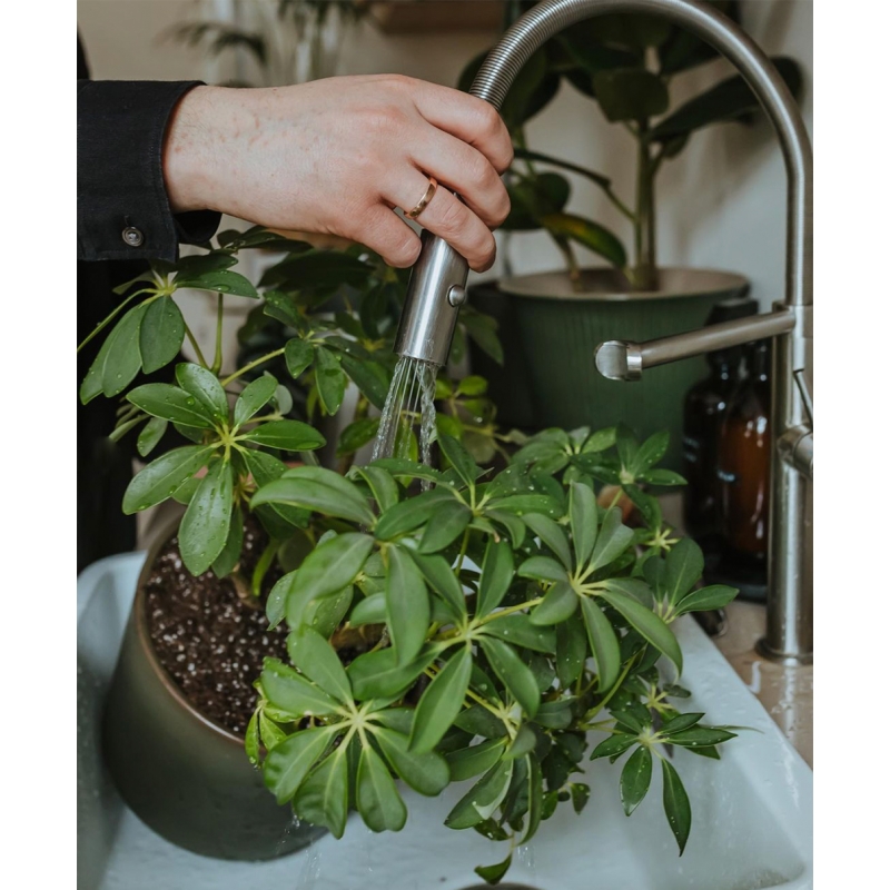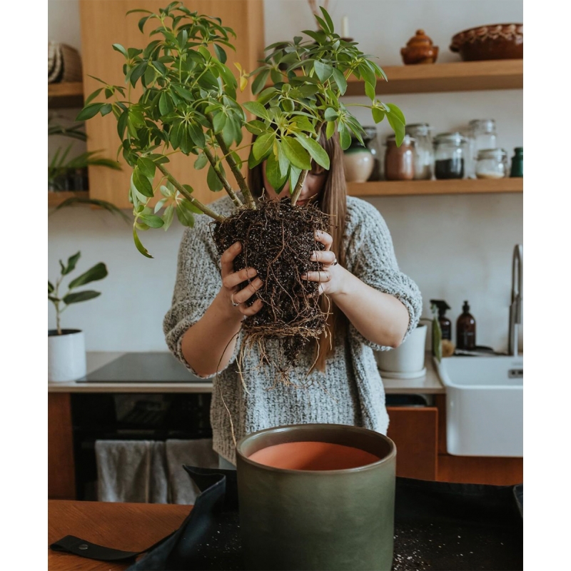 The largest pot in the Moss collection is ideal for medium and large plants and is suitable for a wide, low windowsill, a chest of drawers or a pedestal. It can also accommodate a monstera with a rich crown of large leaves or a sturdy rubber tree. The clay pot breathes in harmony with the plant's roots, ensuring that they receive oxygen, which is important for the development of a healthy root system. The porous material of the pot also allows excess moisture from the soil to evaporate easily.