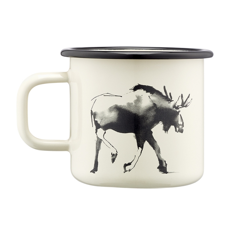This beige enamel mug with a moose motif by Finnish painter Teemu Järvi will take you into the heart of the wild Nordic nature. A beautiful gift for all nature lovers.