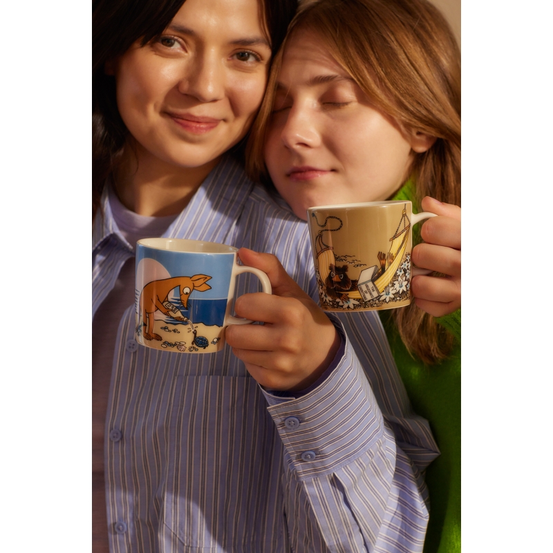 A lovely beige mug with the character Muskrat from the Moomin stories by the famous Finnish author Tove Jansson . This mug is a great gift not only for children, but also for adults who like to remember the magical moments spent with Moomin books. Get this original mug and treat yourself to a cup of joy and fantasy every morning.