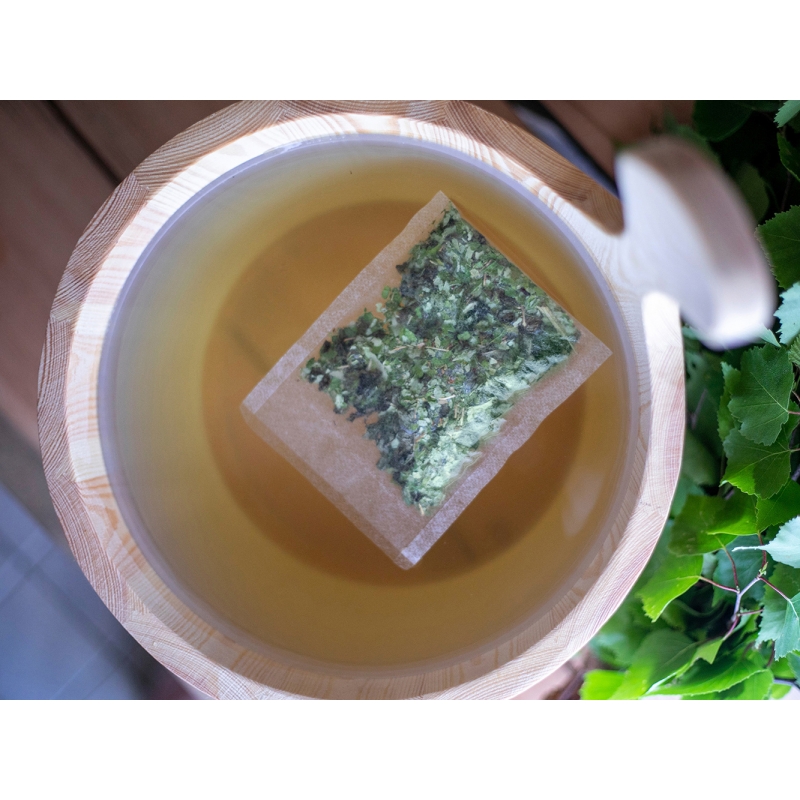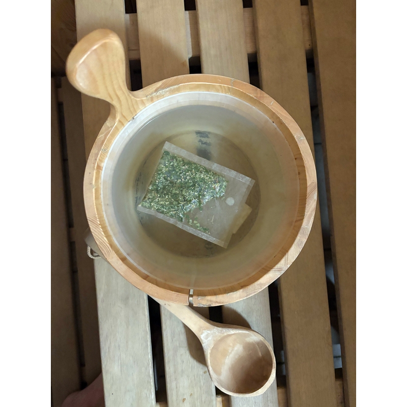 Place the bag in a bucket and pour hot water over it. Let it steep for about 20 minutes until your sauna is warm. Pour water over the stove as usual and enjoy the pleasant aroma. The bag can be used at least twice - squeeze gently after use and let it dry.