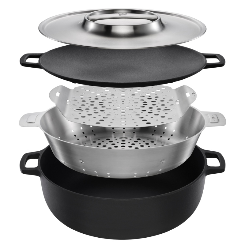 Cast iron with Thermium™ surface treatment, stainless steel lid