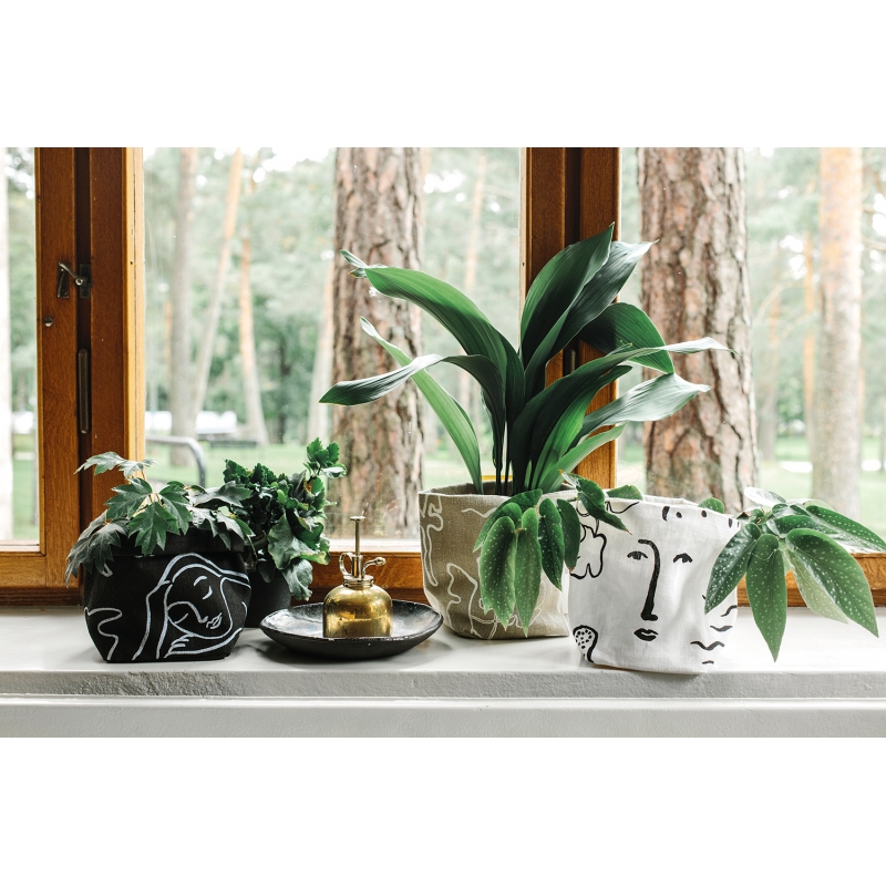 The storage basket made of premium hemp fiber features the motif of Onnenmaa (Land of Happiness). Finnish designers Saana ja Olli focused on brush painting and free association to create a dreamy safe place as a temporary refuge from reality. The basket can be used not only to store small items, but also as a stylish cover for a flower pot.