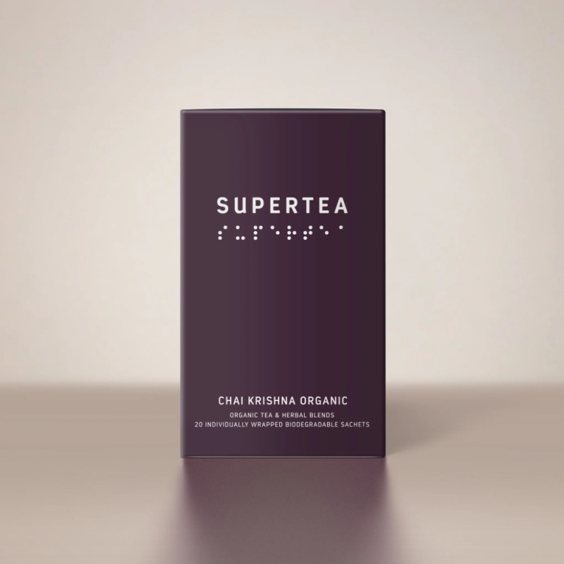 The tea is part of the SUPERTEA collection, which combines pure organic ingredients, Scandinavian minimalism, and honest craftsmanship. Each sachet is individually packed in biodegradable material free from plastics and microplastics. This allows you to enjoy your favourite cup of chai with full respect for nature and your well-being.