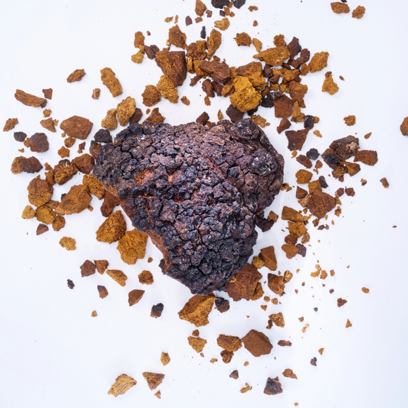 Chaga is a natural source of a wide range of bioactive substances – it contains diverse polysaccharides including beta-glucans, triterpenes, melanin, phenols and phenolic compounds. It also obtains valuable substances from the host birch, such as betulin and betulinic acid. It also contains vitamins B and D, beta-carotene, magnesium, calcium, iron, copper, zinc, manganese and germanium.