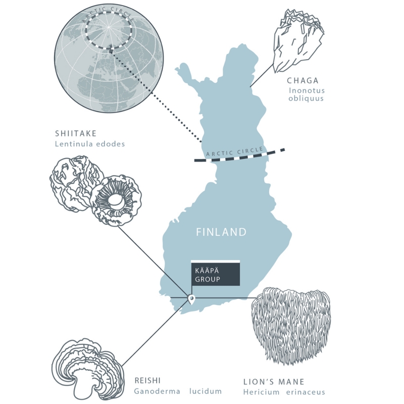 Lion's Mane from KÄÄPÄ Mushrooms is grown on Finnish birch trees, extracted in our own laboratories and packaged directly in Finland. Every step of the production process is supervised - from the substrate to the finished product.